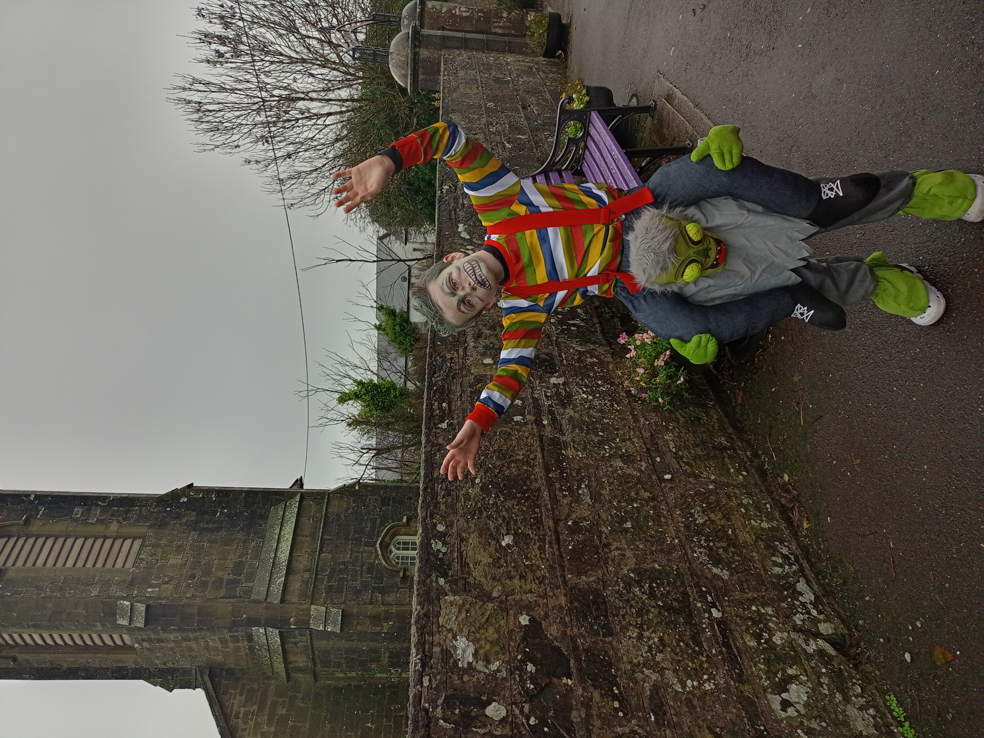 Kids Carry Me Zombie costume is a one piece Zombie costume with faux human legs.