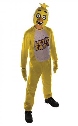 From the horrifying Five Nights at Freddy's comes Chica the chicken. Included in this costume is an all in one yellow jumpsuit with the iconic "let's eat" bib printed on the front, gloves and a Chica mask.
