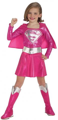 From the DC super heroes range comes our children's Supergirl costume. Includes pink dress with attached cape, belt and boot tops.