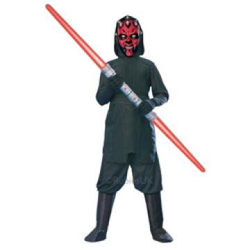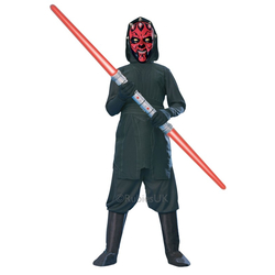 To complete this look is a red and black face mask with horn details and elasticated head band for a secure fit. A Darth Maul lightsaber is also included.