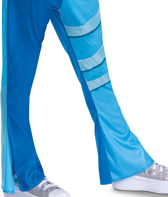 Disney Descendants Chloe Children’s Costume — features a stylish blue flared jumpsuit with a contemporary design and coordinating printed belt.