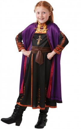 From the Disney movie Frozen 2 comes our new Anna Costume. Included in this costume is a long Black and gold dress with attached cape.