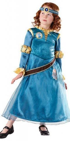 This is the official Disney Pixar’s Brave Merida Kid’s Costume – Is your little one “Brave” and willing to take on the world with just a bow and arrow and a lot of spirit? This is a beautiful replica of the Merida blue and gold princess dress including headband.