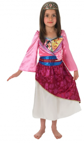 This Kids Disney Princess Mulan costume includes a colourful long sleeved dress and a princess tiara.