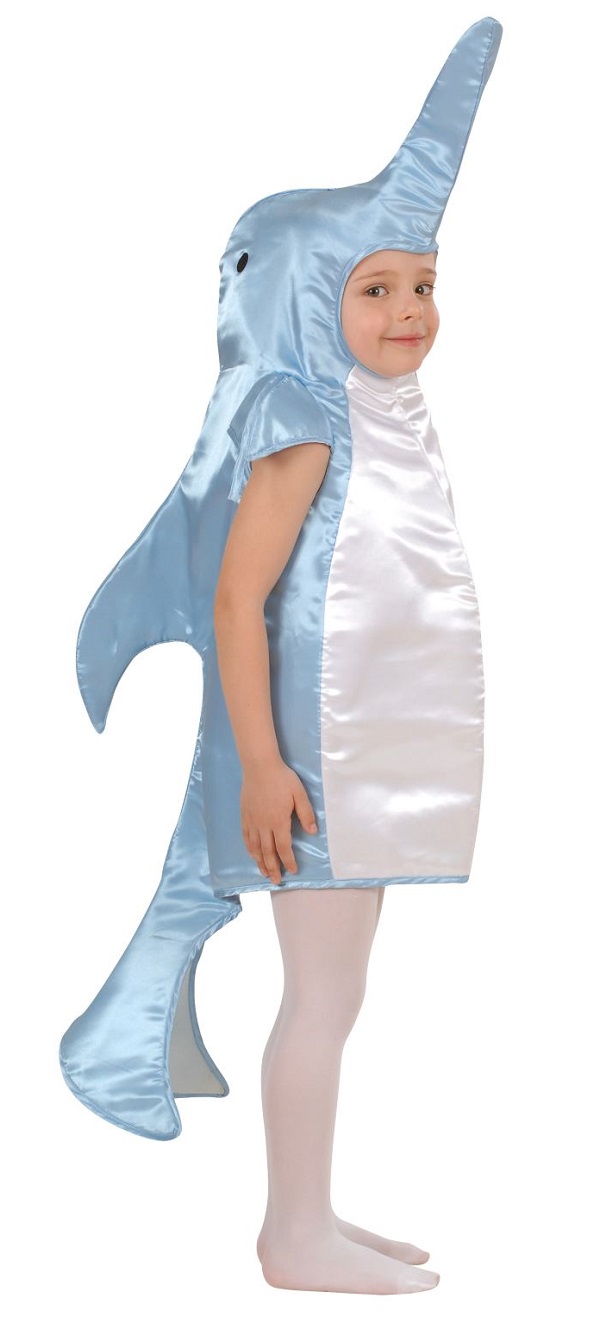 The most loved aquatic mammal can be brought to life with our fun and creative Dolphin Costume. This cute costume includes a one piece jumpsuit with an attached Dolphin hood and fins.