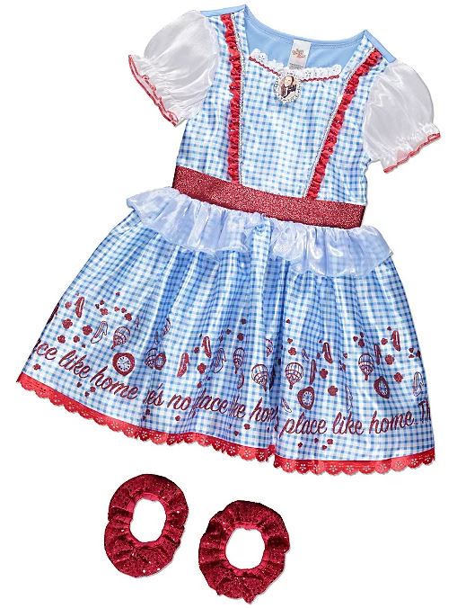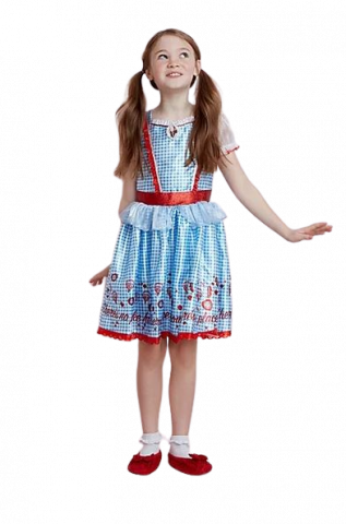 This beautiful Kids Dorothy costume comes with a white and blue dress with red detail. Glitter shoe covers and a hand puppet are also included to complete the look.