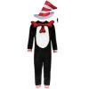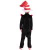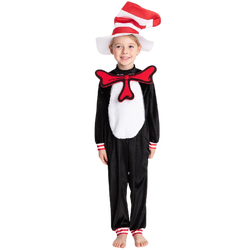 'Why fit in when you were born to stand out?' says Dr Seuss. And stand out they certainly will in our fabulous 'Cat in the Hat' costume. Crafted from a black cosy velour fabric with a faux fur section for the tummy, our all-in-one has an adorable red removable bow and an incredible tall stripe top hat.