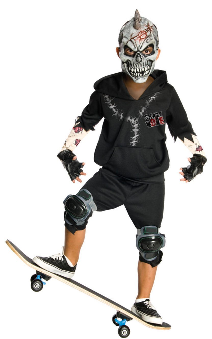 This Kids Facepaint costume includes a black printed hoodie and a pair of black three quarter length trousers with jagged ends. Also included in this creepy look is a face mask and a pair of black fingerless gloves.