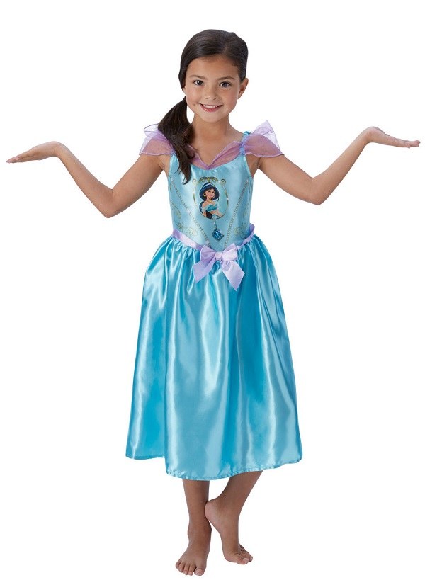 Kids Fairytale Jasmine Costume includes a satin dress with an organza bow and organza glitter sleeve detail.