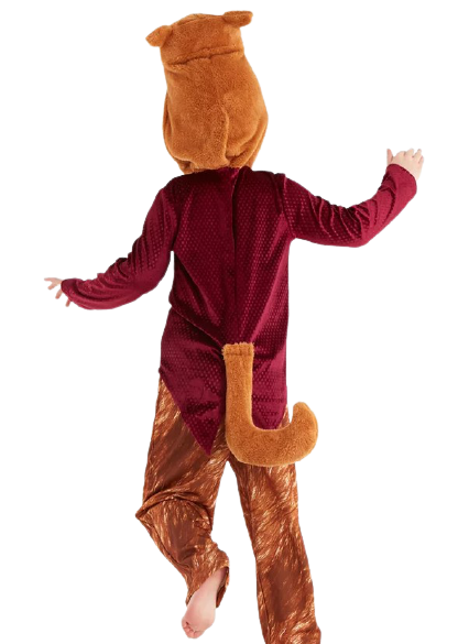 Your little one will love our Fantastic Mr Fox costume based on the character from the classic Roald Dahl book. The tricky and clever Mr Fox makes nightly visits to the cruel dim-witted farmers Boggis and Bunce and Bean to provide food for his family. The costume has a top which is made from a textured burgundy velour with a faux waistcoat section with buttons and a fox fur chest, fox hood & tail. The matching orange trousers have a fox fur print and an elasticated waist.
