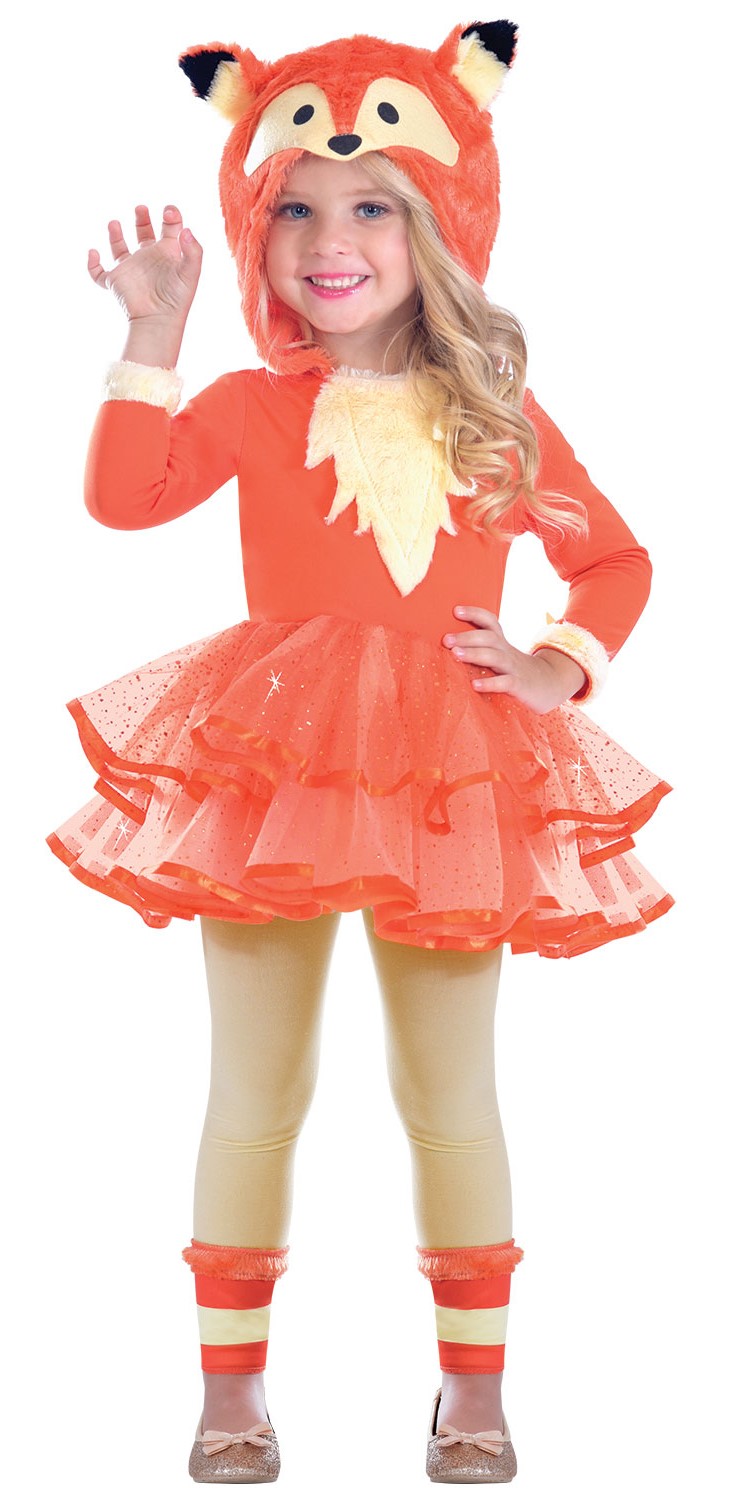 This Kids Fox Hooded Dress includes a dress with hood, leg warmers and a tail.