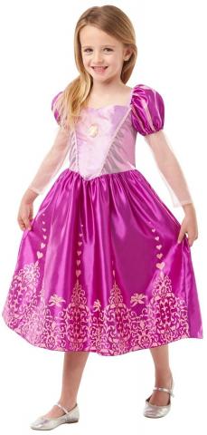 Rapunzel wouldn’t be seen outside her tower without this Gem Princess Rapunzel Disney Costume.This Costume features a pretty pink dress with rapunzel iconic puff sleeves, satin & lam bodice with character gem motif. This outfit is completed with a satin style skirt with an organza shimmer peplum and sparkly glitter detail.