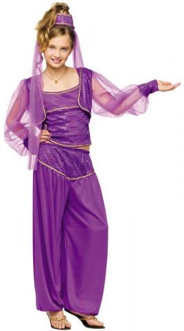 Transform your little wonder into a magical being with this excellent Dreamy Genie costume. The Dreamy Genie costume features a purple camisole top with gold sequin design and a bolero jacket with sheer fabric sleeves. Completing the magical costume there is also a pair of matching pantaloons also featuring a gold sequin design and matching purple headpiece with sheer veil.