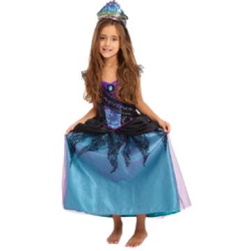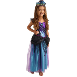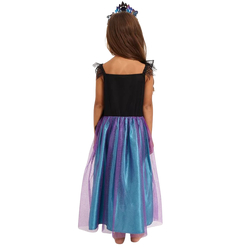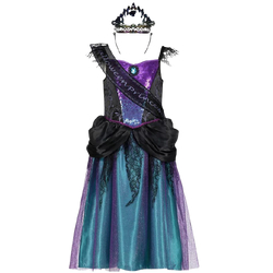 Your little one will love getting into the Halloween spirit with this bewitching purple princess costume set. With multicoloured headband, and coordinating dress with tulle layer skirt, it's embellished with sequins to the bodice, and is finished with a gothic black lace trim for added spook. What's more, the elasticated straps make fancy dress comfy and easy too for added convenience.