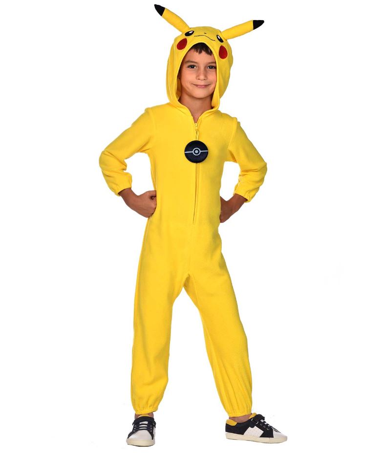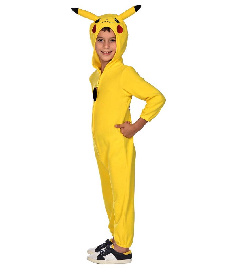 This kids Pokemon Pikachu Costume includes a fleece hooded jumpsuit with a pokeball zip pull.