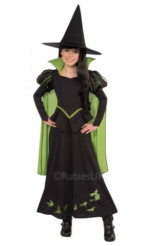 Wizard of Oz fans will love dressing up as Dorothy's nemesis, the evil witch with a mind to steal her ruby shoes while casting magical spells. This officially licensed Wicked Witch of the West costume has amazing features such as the green braid trim around the sleeves and the glittering flying monkey print along the bottom of the skirt. To complete the look, the traditional pointy black hat is also included!