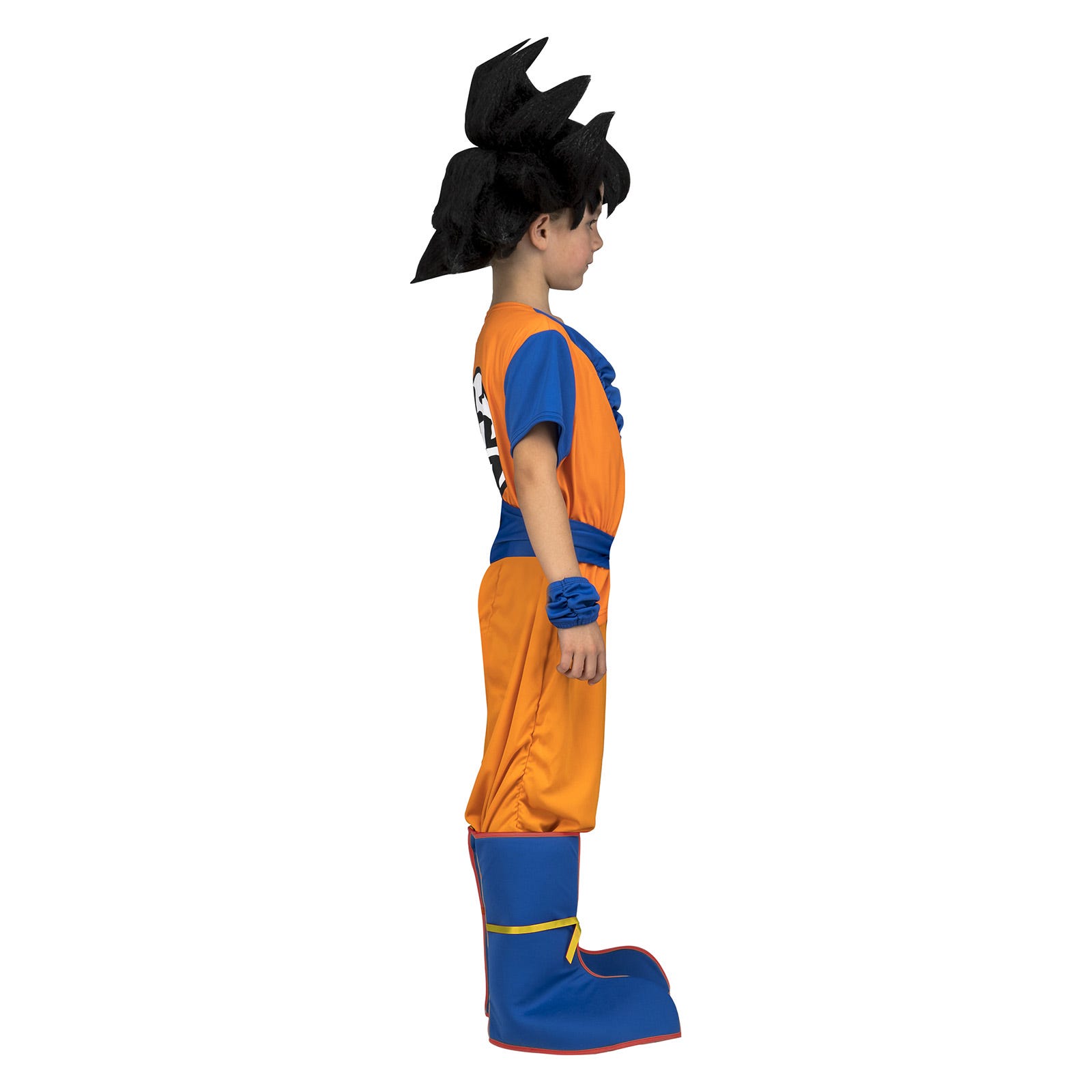 This kids Goku costume includes a t-shirt, sash, pants, boot covers, armbands.