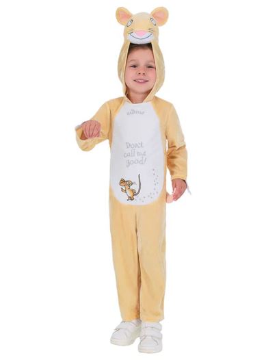 This Deluxe Gruffalo's Mouse Costume is an all in one polyester jumpsuit which features a detailed plush character hood with soft white claws and plush tail to match. This is an official licensed costume and a great choice for book week!