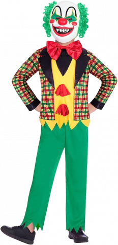 This Hollywood Clown Costume includes a printed top and green trousers. To complete the look a mask with hair is also included.