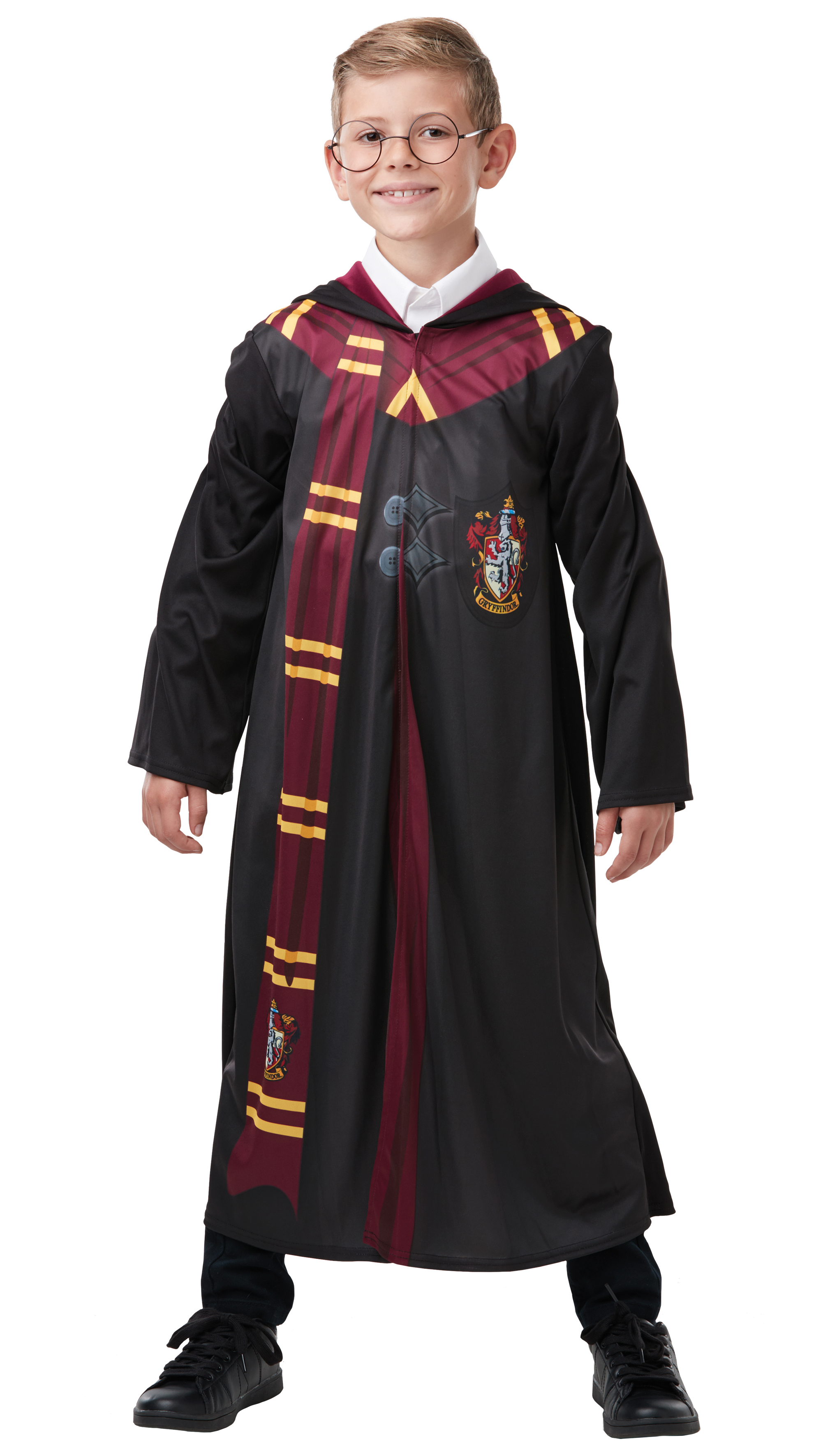 Wrap yourself in Harry Potter's robe and transform into a student from Hogwarts. Included in this costume is a long black robe with a printed scarf. To complete the wizard look a pair of glasses are also included.