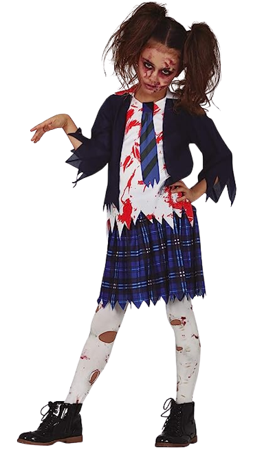 This Kids Highschool Zombie Costumes includes a jacket with shirt and tie and a skirt.