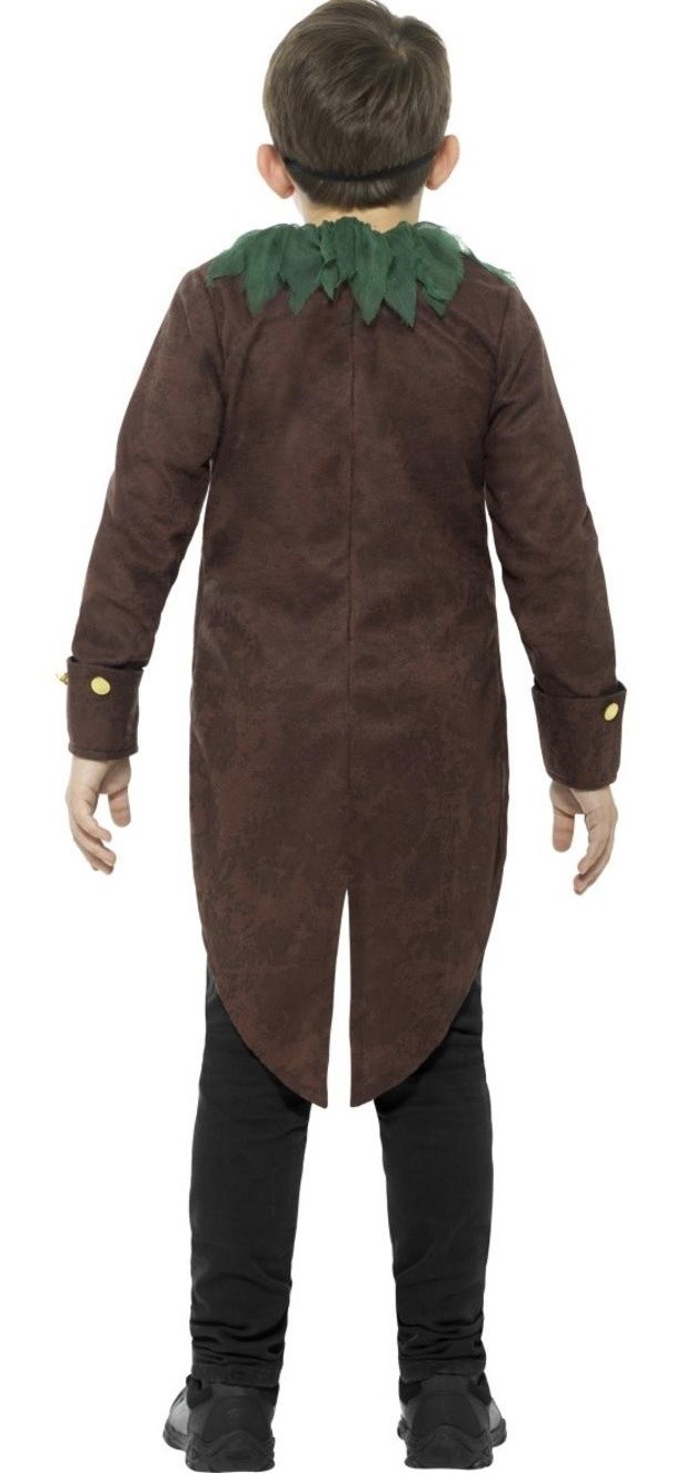 This Kids Goosebumps Jack-O'-Lantern Costume includes a jacket with an attached waistcoat and a mesh ruffle neck collar. To complete the look a face mask is also included. Please note jeans / trousers pictured are not included.
