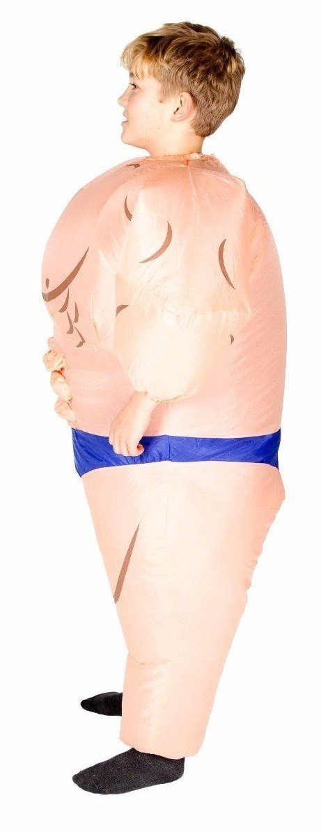 Kids Muscle Man Inflatable Costume includes a one piece inflatable Muscle ManSuit with1a fan to inflate the costume. Requires 4 x AA Batteries (not included)