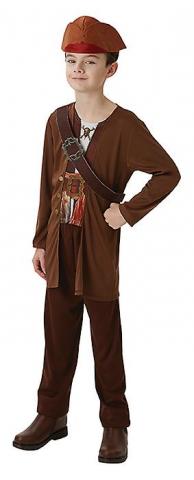 Our Kids Jack Sparrow Costume includes a top with an attached mock jacket and belt. This pirate costume also includes a pair of trousers and a pirate hat.