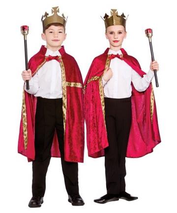 Kids Regal Robe & Crown includes a burgundy cape with gold trim and red bow tie to hold the cape securely on. To complete the look a gold crown is also included.