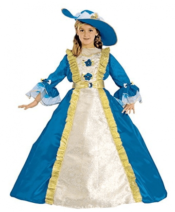 This Kids Royal Princess costume includes a long gown with jewel and bow detailing. The dress also features a hooped skirt.