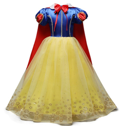 Stand in front of the Magic Mirror and transform into the “Fairest of Them All"! This kids Snow White Costume is perfect for any princess themed party! This costume features the iconic beautiful yellow satin skirt with a blue bodice. The dress is finished off with a stand up collar and red details on the puff sleeves. To complete the look, an elegant long red cape is included. Mirror mirror on the wall, who's the fairest of them all? It could be you!