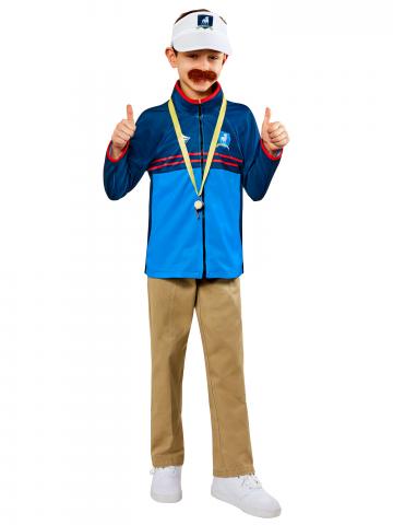 Get your child ready to inspire the team with the Ted Lasso Kids Costume! This fun ensemble includes Ted’s signature blue jacket, a sporty visor, a stick-on moustache, and a whistle—everything they need to embody the lovable football coach from the hit TV show. Whether for Halloween, a themed party, or just imaginative play, this costume captures the optimistic and motivational spirit of Ted Lasso. Perfect for young fans of the show, this outfit is a surefire way to score big on costume day!