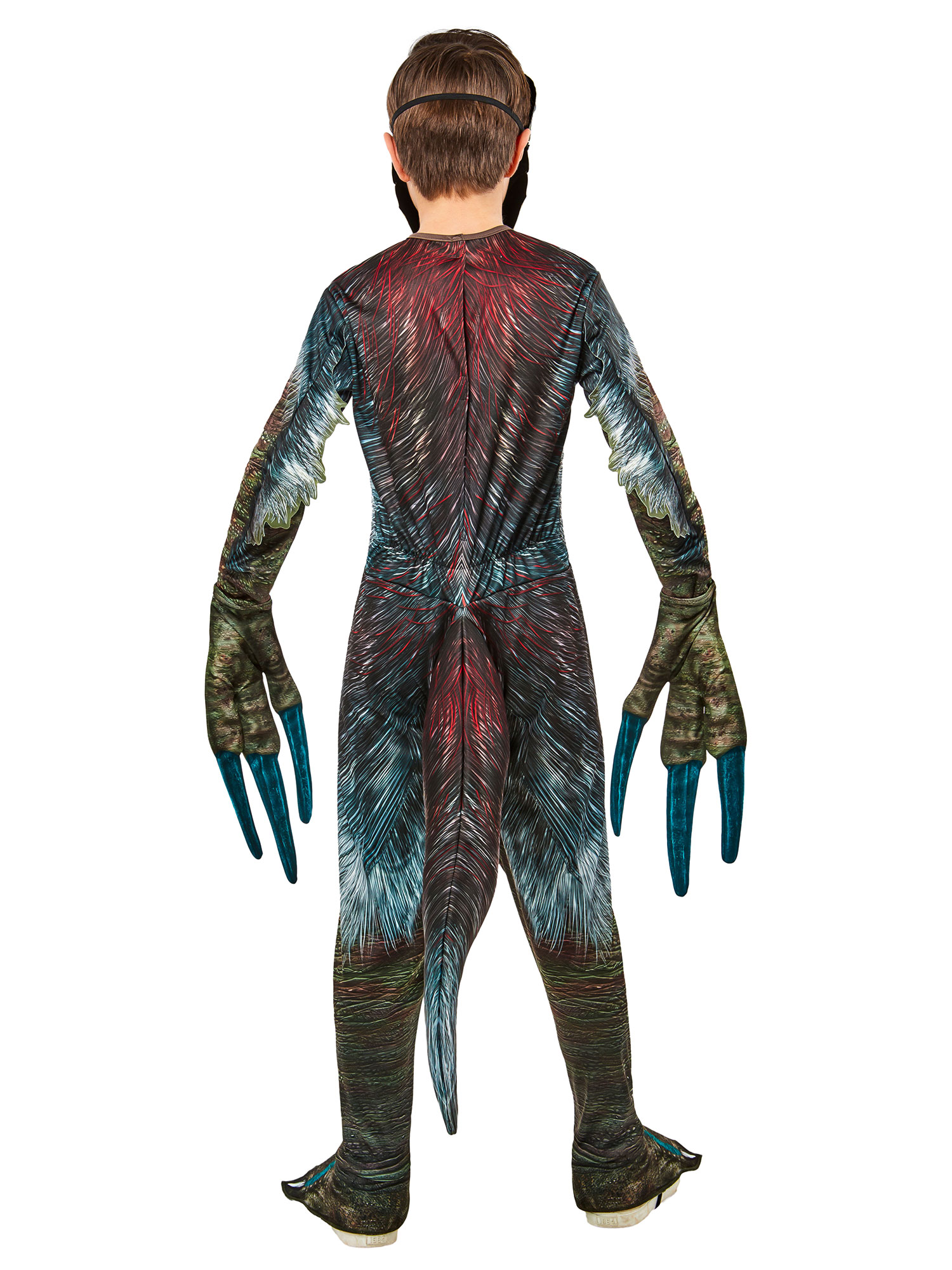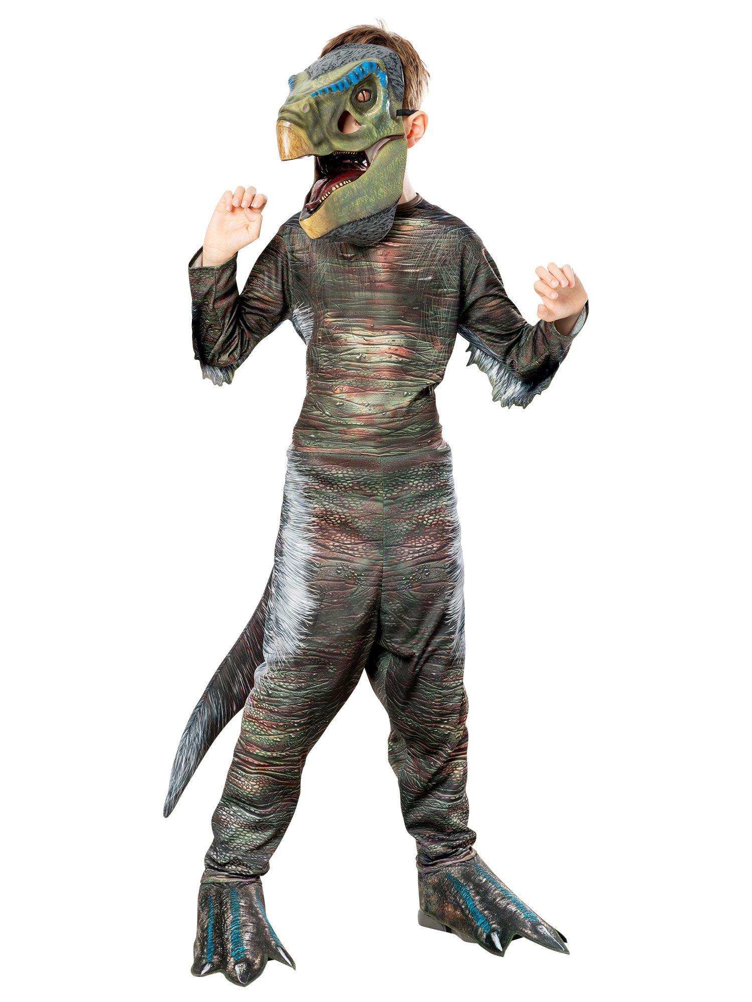 Become a prehistoric monster with our Kids Therizinosaurus Costume. Included is a jumpsuit, shoe covers and a 3D tail. To complete the look a mask is also included. Please note gloves are sold seperately.