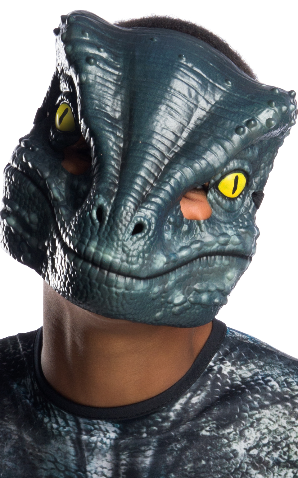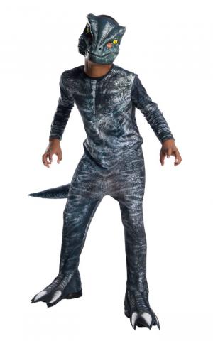 Let your child be a head-turner during character-themed activities and costume parties with this Velociraptor Costume. This extremely detailed costume comes complete with a one piece printed jumpsuit with shoe covers. A moulded plastic mask and stuff-able tail are also included.