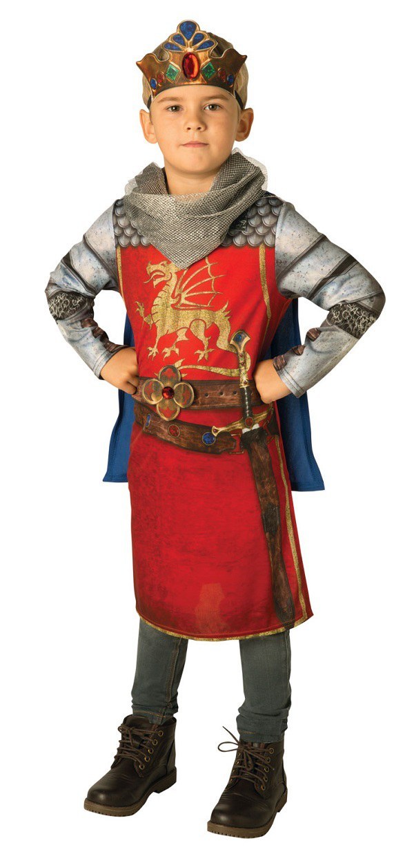 This Kids King Arthur costume includes a long sleeved printed tunic with a cape and a snood. To complete the look a foam crown is also included.