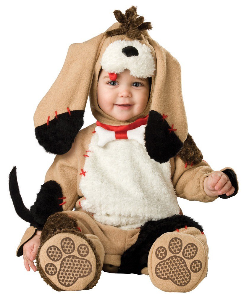 The Precious Puppy Costume is a fine quality disguise and includes a lined zippered bodysuit featuring plush faux-fur patches, inner leg snap closure, doggy tail, puppy face hood and skid-resistant paw print booties.