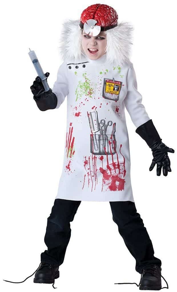 This Kids Mad Scientist Costume includes a long lab coat with details of blood, lab tools in false pocket and an I.D card.