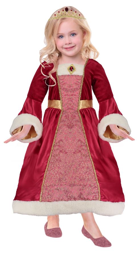 Topped with a gold tiara adorned with red gemstones, this outfit is perfect for any aspiring young royal. Ideal for Halloween, parties, or dress-up fun!