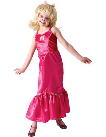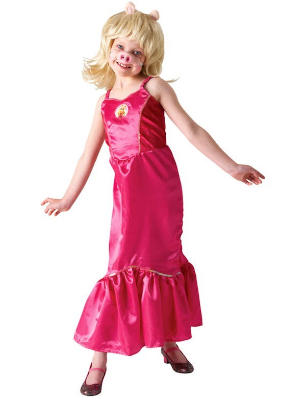 This officially licensed Kids Miss Piggy Costume includes a long, pink satin dress adorned with sequins and featuring an image of Miss Piggy on the front. The dress simply pulls on over the head and offers a half elasticated waist for a comfortable fit.