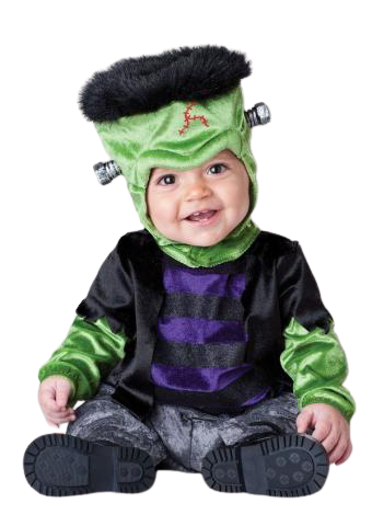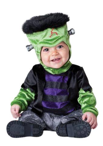 This Monster-BOO Costume includes a jumpsuit with an attached tattered waistcoat and also features leg snaps for easy diaper changing.