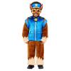 This Kids Paw Patrol Chase Costume includes a one piece blue and brown furry jumpsuit, a mask and backpack.