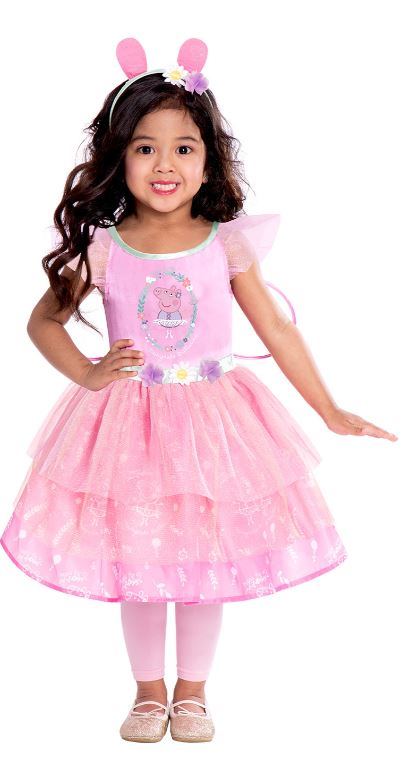 This kids Peppa Pig Fairy Dress includes a pink dress. To complete the look a headband and wings are also included.