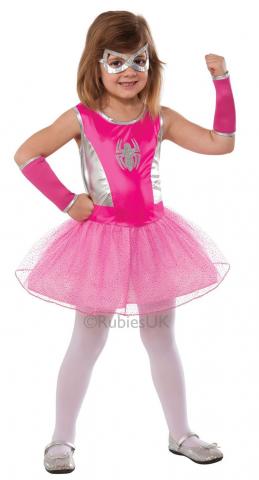 This officially licensed, Pink Spider-Girl Costume. It's glitzy, glittery, silvery pink creation will turn you into Spider-Girl as you've never seen her. Said to be even more agile than Spider-Man, some say she can melt people's hearts at over 100 yards. The costume Includes a spider girl tutu dress, gauntlets and mask. This Spider-Girl Costume looks ready to take on any neighbourhood crisis!