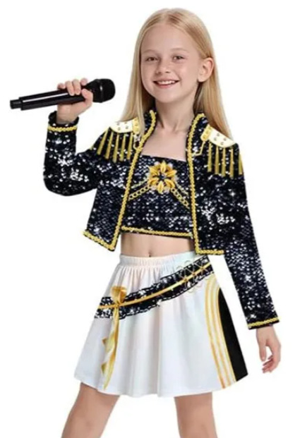 Unleash your inner demon hunter in the Pop Star Demon Hunter - Mira Black Outfit, designed for those who want to rock a dark and rebellious look. Includes Top, Skirt and Shirt.