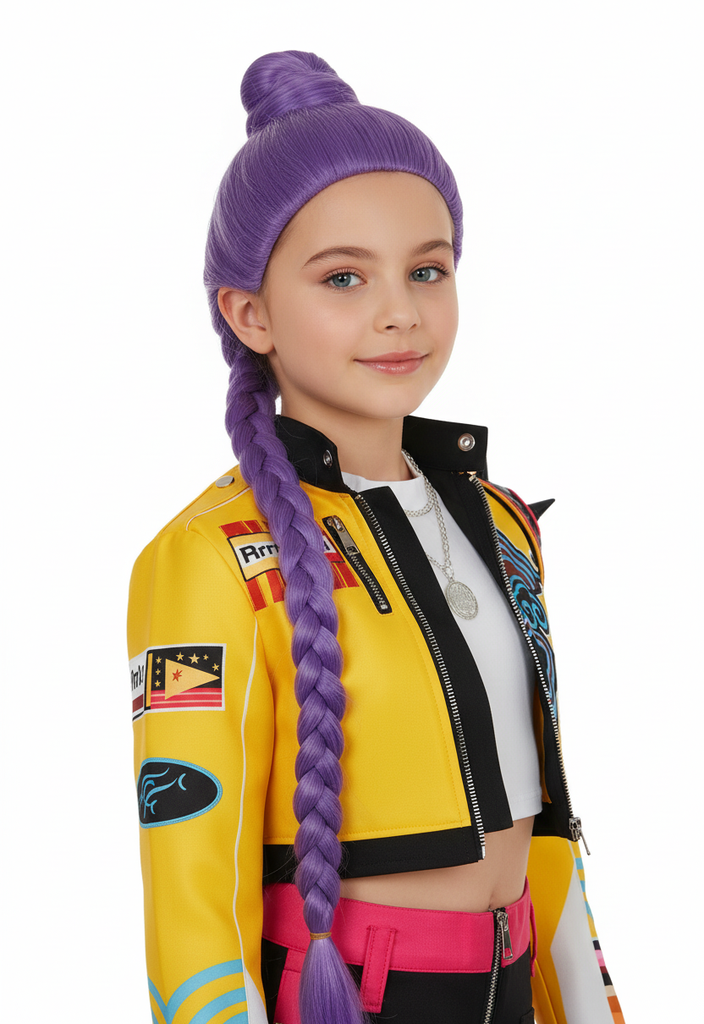 Unleash your child's inner demon hunter with the Pop Star Demon Hunter Rumi Short Tracksuit. This K-pop-inspired costume comes complete with a jacket top, shirt, and skirt, perfect for aspiring young warriors looking to slay demons in style