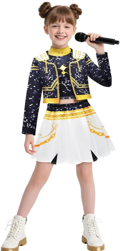 Pop Star Demon Hunter - Zoey Black Outfit is a stunning ensemble designed for those who like to stand out. With edgy details and a fierce silhouette, this outfit is perfect for those who want to unleash their inner popstar while hunting demons in style. Includes Coat top and Skirt.