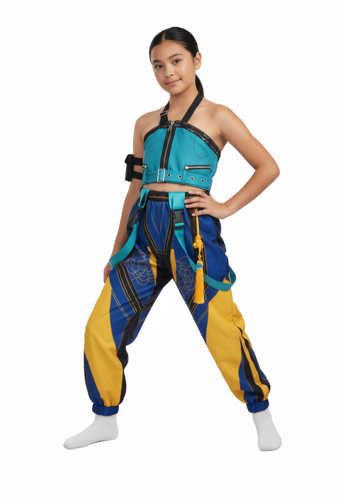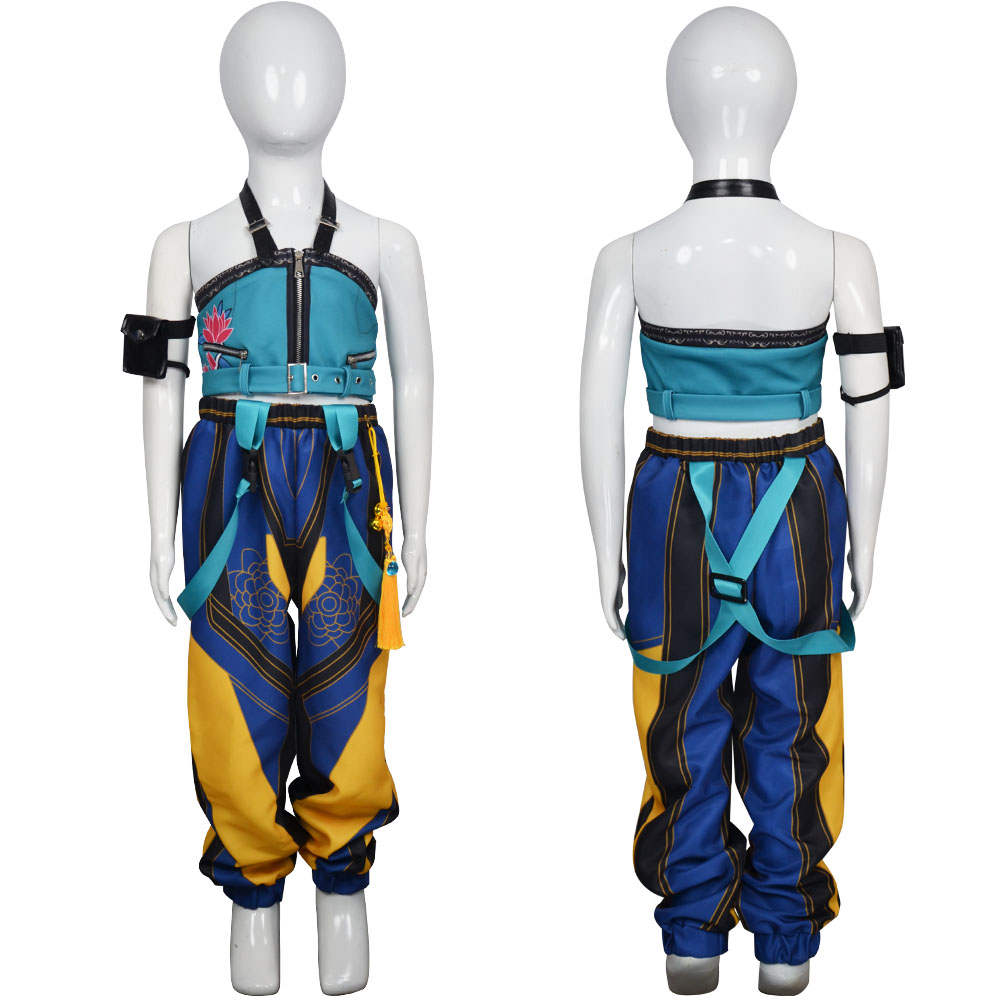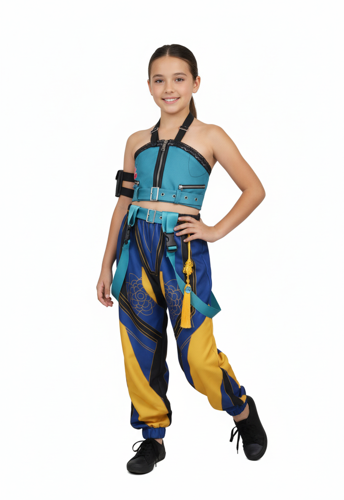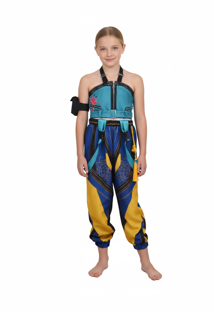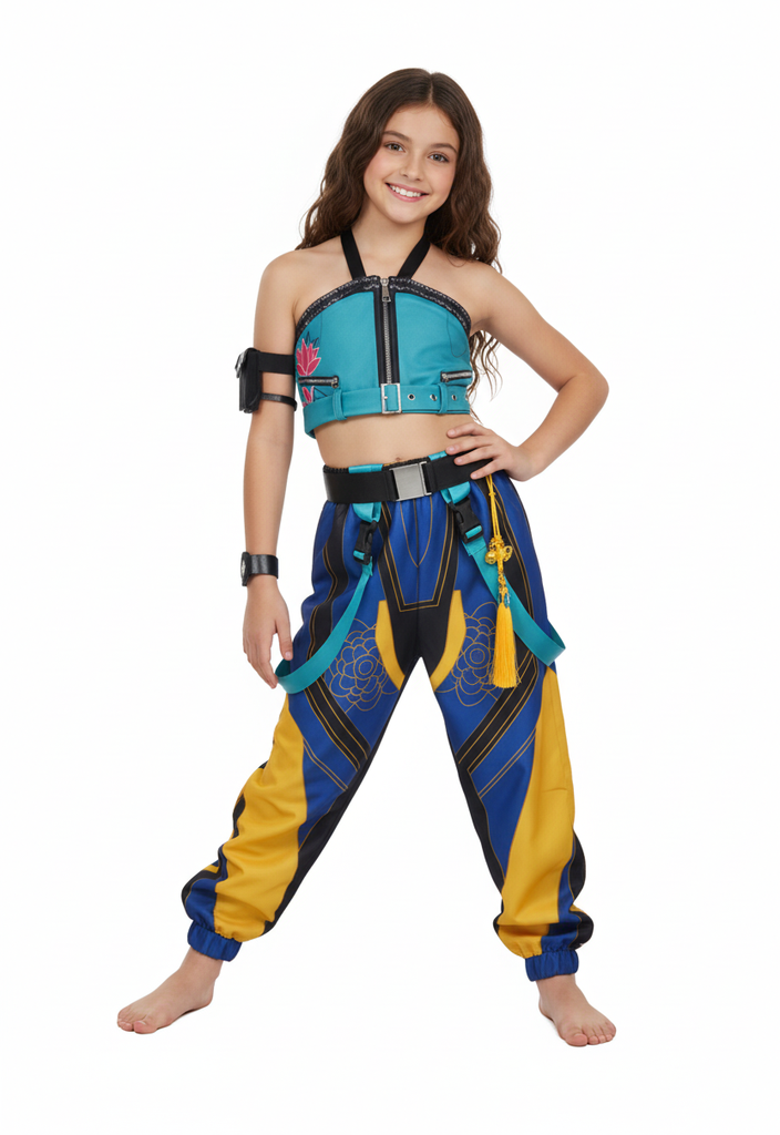 Unleash your inner K-pop demon hunter with the Pop Star Demon Hunter - Zoey Complete Set! This stylish costume includes a top, pants, arm bag, wrist accessories, rings, and a bracelet. Stand out from the crowd with this unique and fierce ensemble.