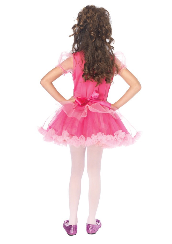 This adorable Pretty Princess Costume includes a ribbon trimmed dress with cameo bow accent, puff sleeves and a ruffled skirt.