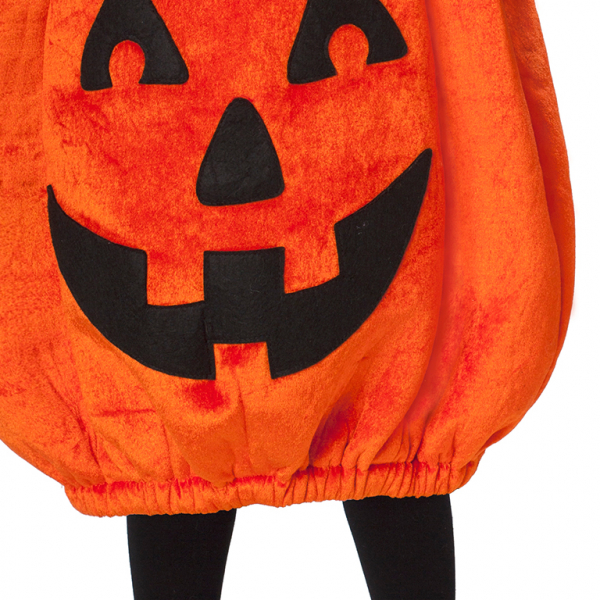 Our Baby Pumpkin Patch Cutie Pumpkin Costume features a plush orange pumpkin sack with jack-o-lantern face and green leaf collar, and a matching cap with plush green stem.