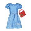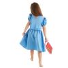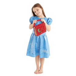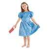 Everyone’s favourite bookworm, Matilda devours classic literature by the age of four and three months. Your little Roald Dahl fan can become their favourite character with our fantastic Matilda costume. This costume features a pretty blue dress has a lacy Peter Pan collar, puff sleeves, keyhole back and silver metallic dots that decorate the skirt which sparkle in the light. The waist has a silver trim and bow detail, and the skirt has an illustration of the character herself. The costume also comes with a ‘History of the Newt’ book cover.
